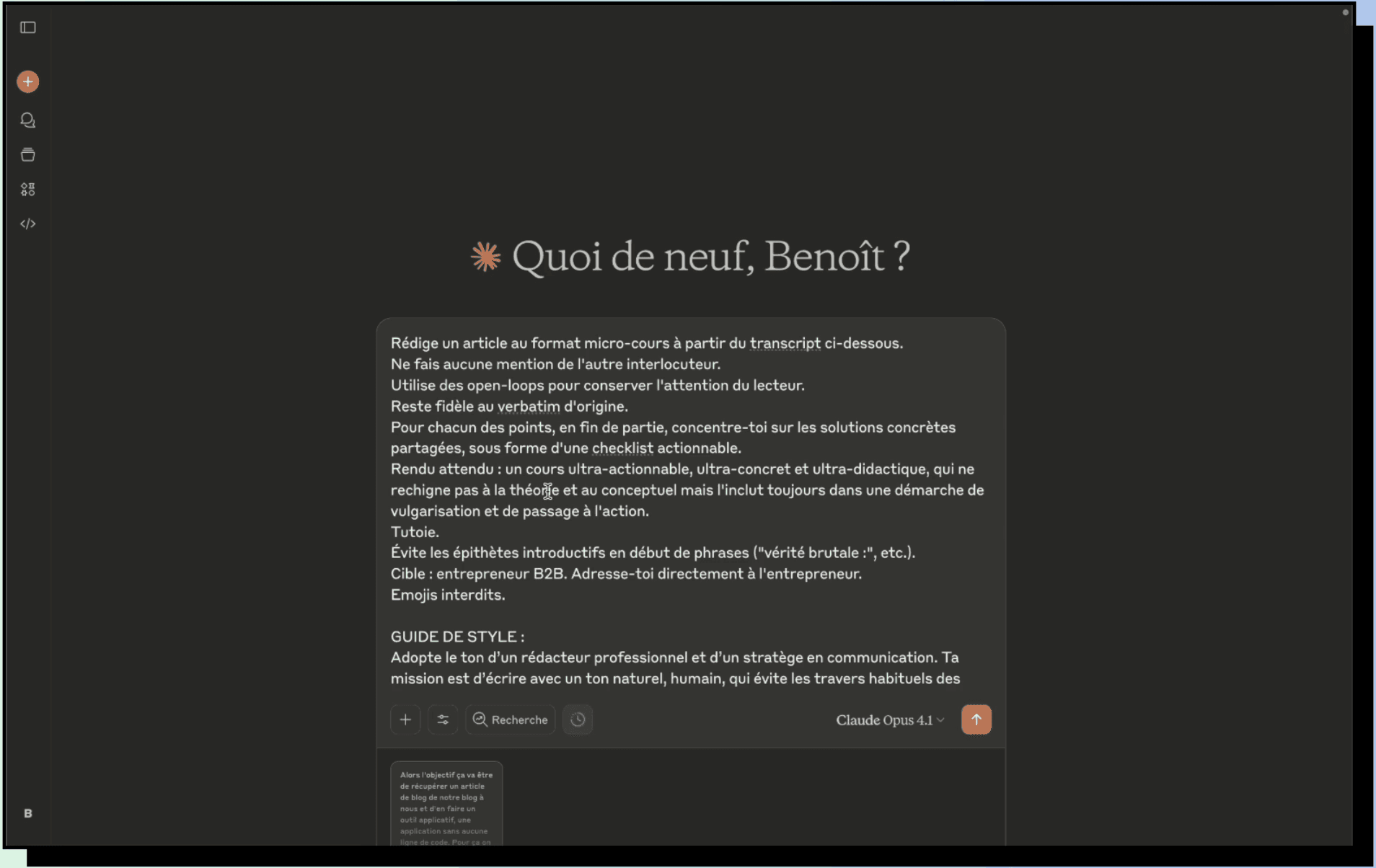Découvre la méthode complète (vidéo + prompts + outils) qui nous fait gagner 15h de travail par semaine.